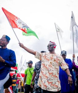 The high point of the event was the handing of the Labour Party flag to the newest entrant to the party, Rt. Hon. Ude Ọkọ Chukwu by Governor Alex Otti.
